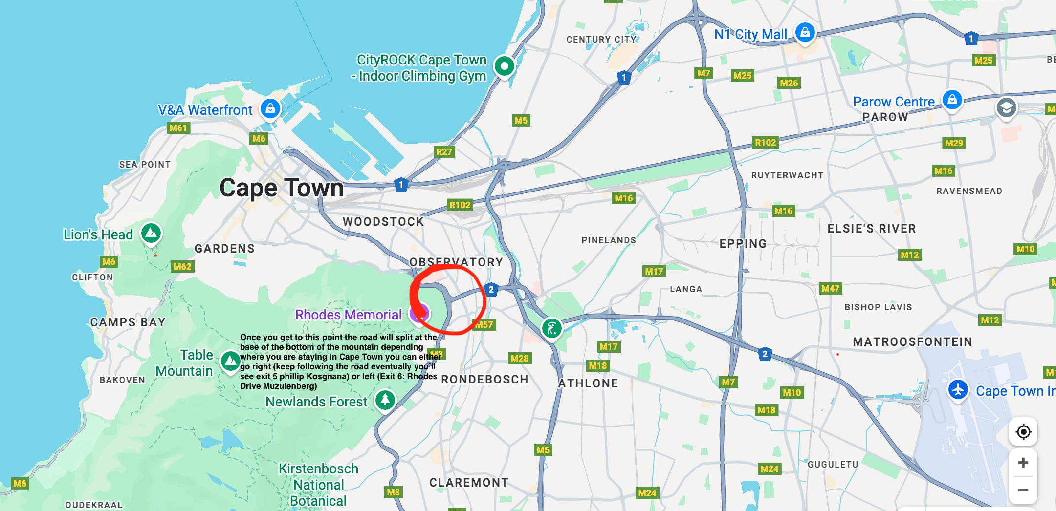 If you’re renting a car and driving into Cape Town yourself please stay on the N2 ( the main highway) all the way until you reach the city side at the base of the mountain. Please look at the screenshot